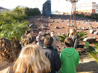 En unes altres zones del parc, explicaven les cabanes, la plaça de la Sardana, els arcs i la zona volcànica, el pou del món…
