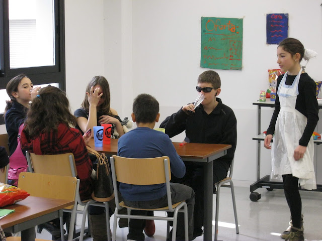 Ens feien passar cap a la cuina i ens deixaven seure com si fóssim personatges de l’obra. Ens posaven patates ala taula on hi ena assentàvem.